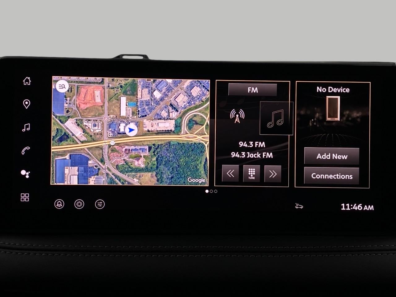 - Radio: Klipsch Premium Audio System -inc: 16 speakers w/subwoofer, INFINITI InTouch 12.3" interactive display, Google built-in w/navigation: Google Assistant, Playstore, maps and data, SiriusXM satellite radio, wireless Apple CarPlay, wireless Android Auto, advanced voice recognition (one shot VDE, Natural Language Understanding (NLU)), INFINITI InTouch services and 5G Wi-Fi hotspot, Active Noise Cancellation (ANC) and 2 data capable type C USB ports in front row