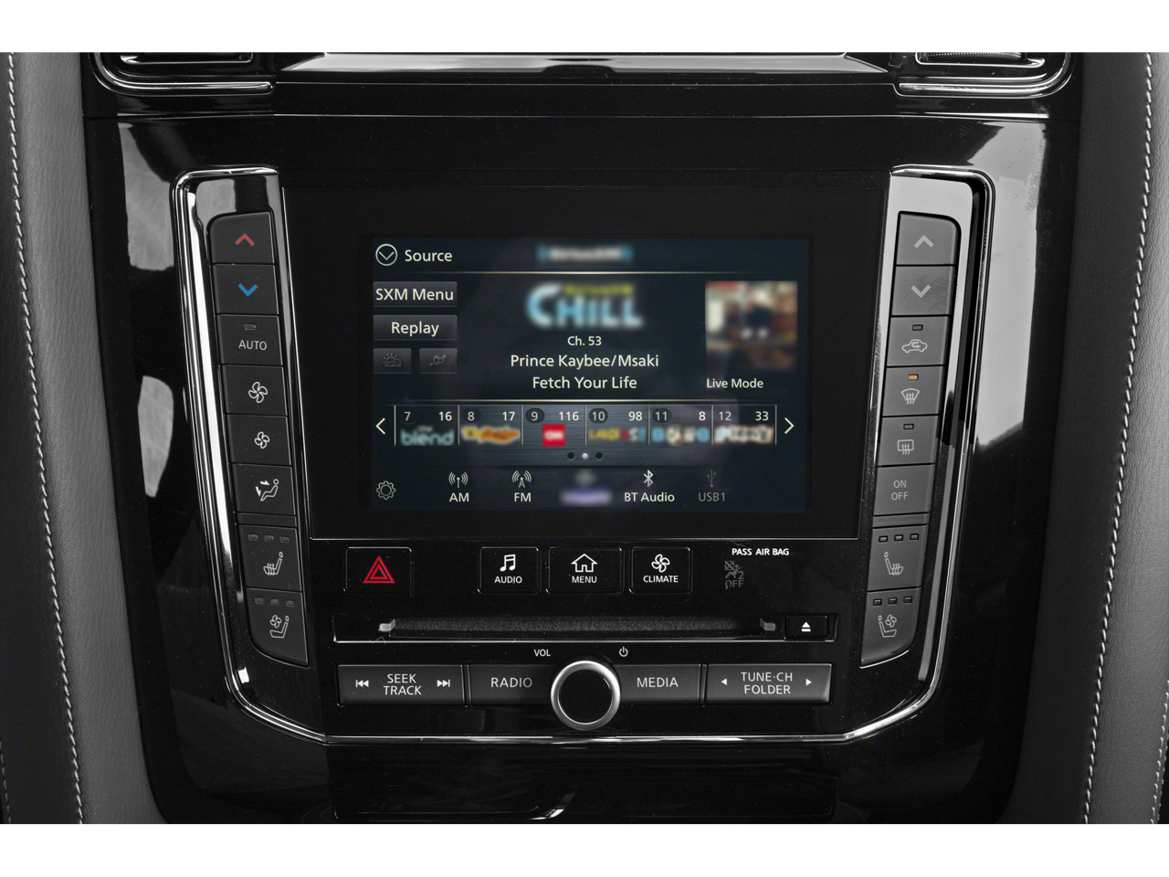 - Radio: Bose Performance Audio System w/17 Speakers -inc: driver's audio stage speed-sensitive volume control, 2 subwoofers, INFINITI InTouch 12.3" interactive display, over-the-air head unit update capability, INFINITI InTouch w/navigation system w/lane guidance and 3D building graphics, MapCare w/over-the-air update compatibility (5-year trial period), premium traffic w/live traffic information (5-year trial period), Tom Tom weather (5-year trial period), HD radio technology, wireless Apple Carplay w/wireless Apple Carplay integration and Android Auto (wired), Siri Eyes Free, wi-fi hotspot (30-day or 1GB trial, whichever comes first), SiriusXM radio (3-month trial period), SiriusXM Traffic (3-month trial period), SiriusXM Travel Link (3-month trial period): weather, fuel prices, stock prices, sports scores, movie listings, and parking, over-the-air head unit update compatibility (5-year trial period), INFINITI Voice recognition for audio, navigation, Bluetooth® and vehicle information, Bluetooth® hands-free phone system and streaming audio, hands-free text messaging assistant, 2x USB ports for compatible devices for audio streaming, and wireless phone charger